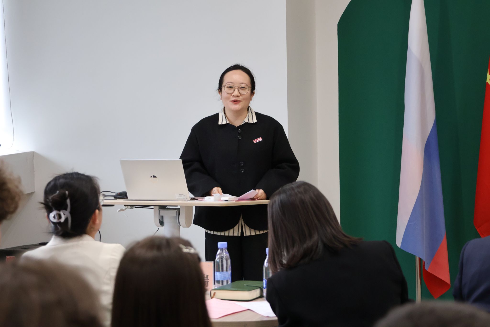 教师代表邓晶为留学生们详细介绍了本学期的课程设置、学分制度及特色教学安排。她表示,学校组建了专业的汉语教学团队,开设“汉语+专业”双轨课程,还将融入太极拳、针灸等中国传统文化特色课程,助力留学生在提升语言能力的同时,全方位体验中国文化。她鼓励留学生们以探索之心对待每一门课程,主动与老师、同学沟通交流,珍惜校园学习生活的每一刻,在求知路上脚踏实地、奋勇争先,努力实现自己的学习目标。