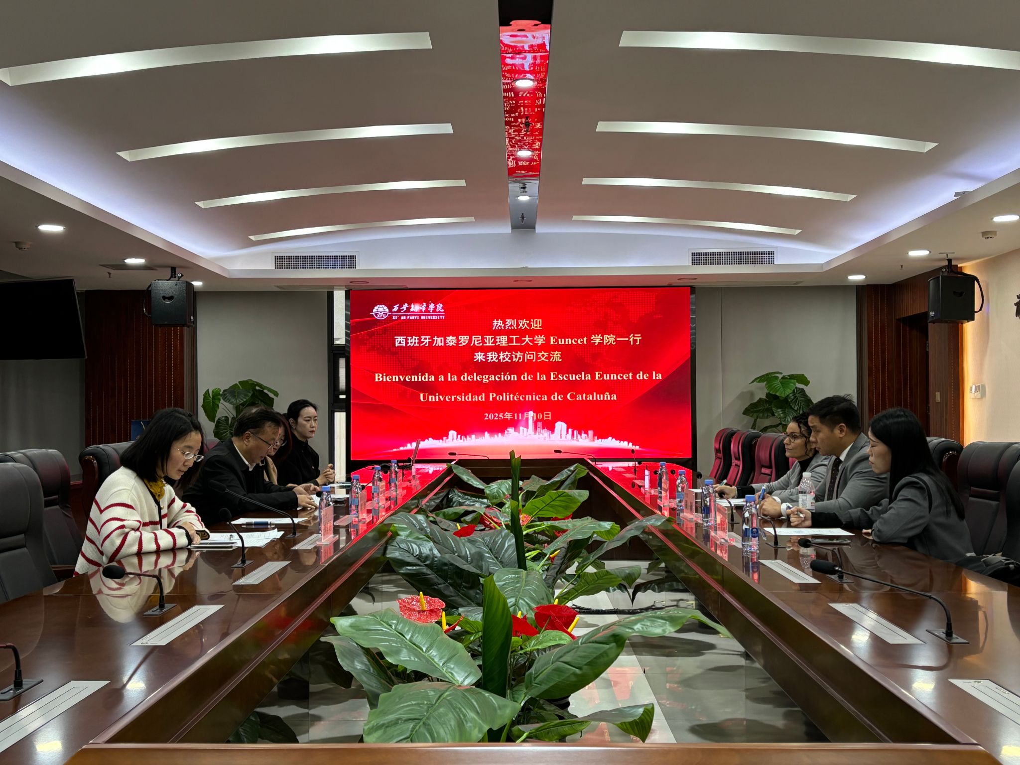 2025 年 11 月10日上午,西班牙加泰罗尼亚理工大学Euncet学院招生部主任梅尔塞·阿内罗·科斯塔、国际合作部亚洲区主任周颖一行来访西安翻译学院。我校副校长郭炜,国际交流与合作处处长、国际交流学院院长王明明等人热情接待了来访嘉宾。