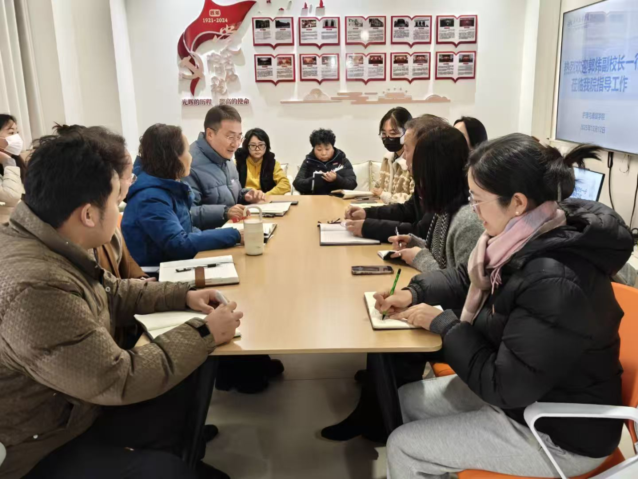 调研中,郭炜通报了各分院近三年国际交流合作成果,详细解读了海外交流项目的校内支持举措。他强调,当前学校正处于 “十四五” 收官与 “十五五” 开局的历史交汇点,也是转型发展的关键阶段。进一步提升整体国际化水平、大力发展国际教育,既是学校实现高质量转型发展、迈向更高水平办学目标的重要抓手,更是为学生搭建跨文化交流平台、拓宽全球视野格局,助力学子成长为兼具家国情怀与世界眼光的复合型人才的关键举措。各学院需从低年级起系统性融入国际化意识教育,将国际视野培养贯穿人才培养全过程。